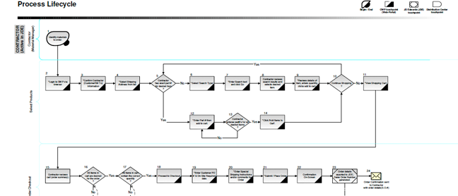 Created all development docs, including process flowcharts, design comps, ERD, Use cases and prototype. Automate manual process of entering Contractors orders into company’s financial system, via a ‘Web ordering tool’. Order volume valued at $50M per year.